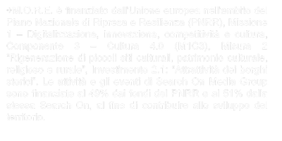 Il Digital Tourism Fest è un'iniziativa realizzata da Search On Media Group e WMF nata per concretizzare i principi guida del progetto M.O.R.E. (Monasterace Open Resources Experience):